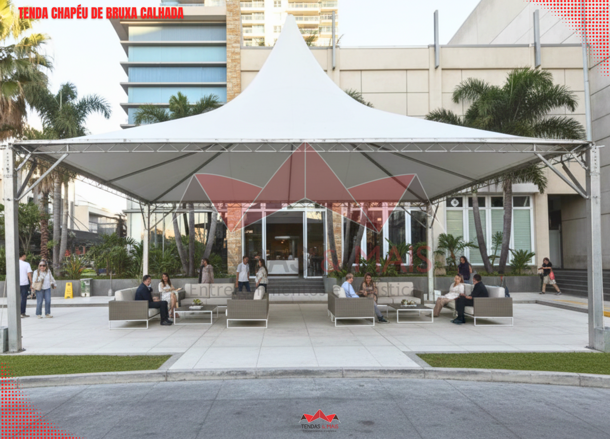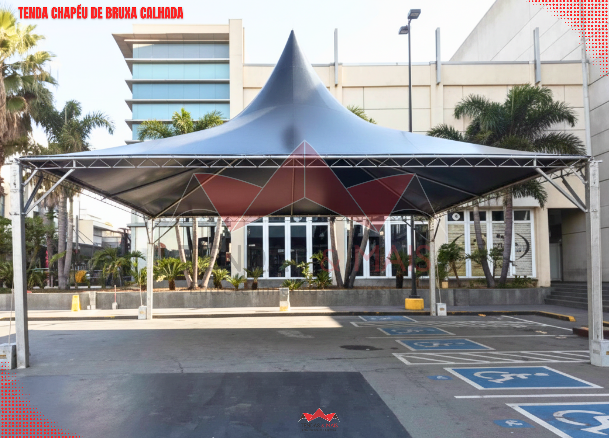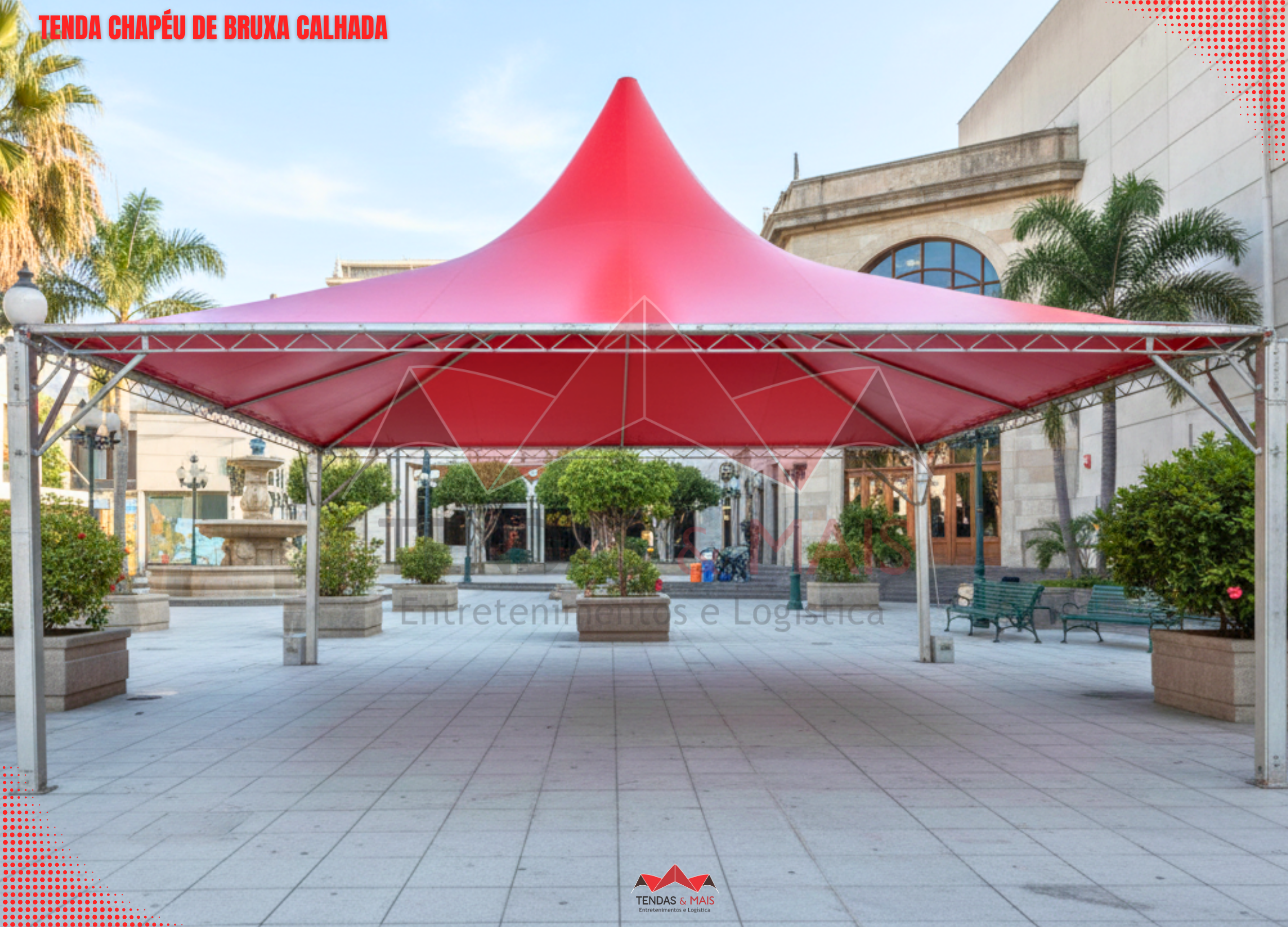 A Tenda Chapéu de Bruxa Tendas e Mais é indicada para várias finalidades como: eventos desportivos, feiras, exposições, comércio, divulgações, lazer etc.