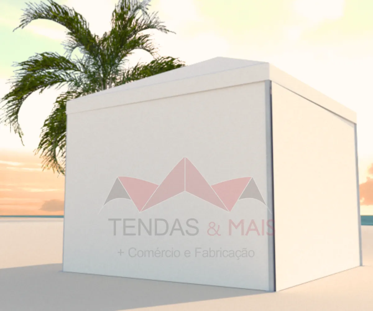 - LONA VINÍLICA - Confeccionada em tecido sintético (Lona Vinílica) especial para Coberturas, coberto com PVC laminado. Pigmentado em ambas as faces, black out (Filtro Solar), auto extinguível, anti mofo, anti fungos e anti raios U.V e I.V, impermeável, modelada e soldada por sistema de alta frequência nas emendas (Vulcanização).